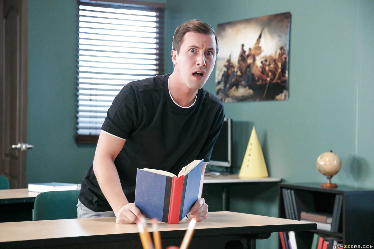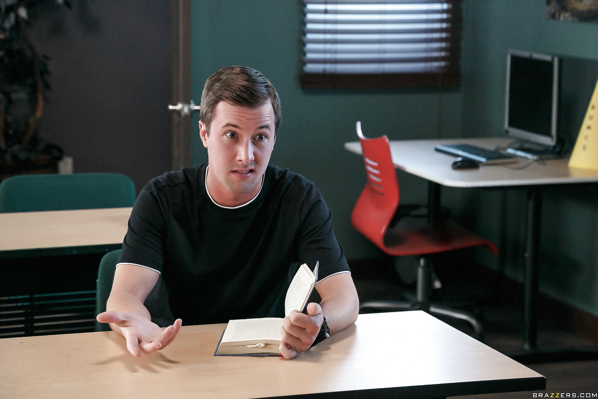Professor Audrey Bitoni could not be more irritated – her evening plans have been dashed thanks to wise ass student Jessy Jones, whom she now has to watch during after school detention. Calling her date to apologize for bailing, the horny Prof. Bitoni can’t resist having a little bit of phone sex with her beau, but when she catches Jessy peeping she decides that if her student is going to keep cock blocking her, he may as well put himself to good use and fuck her tits.