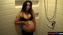 40 weeks pregnant Thai MILF amateur fucked after a hot shower She jerked his cock before he finally penetrated her while recording everything! This Asian cougar has all her hormones out of control and is ready to burst!
