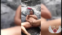 After having a tub in the sea, obese dark haired is jerking and liking it a plenty of