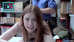 All natural redhead teen shoplifter with perfect tits ordered by a dirty LP officer to suck his big dick after the interrogation the he fucked the pale skinned sluts trimmed pussy hard on CCTV to teach her the rules