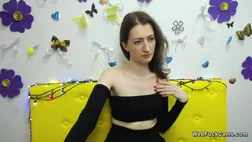 Sexy brunette amateur babe KlaraDreval sitting in black clothes then pulls up her top and flashes part of her tits for horny viewers on her homemade solo webcam show