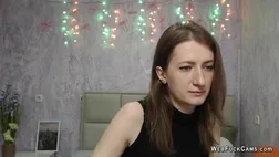 Brunette amateur babe KlaraDreval in black sleeveless top chatting in live webcam show then pulling out boob and rubbing for horny viewers in her bedroom