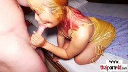 Amateur Thai teen Rush with small tits is massaging her european client back He turns around and asks her to take care of his big white cock So she starts sucking the hard dick then she bends over and lets him to discover her asian pussy