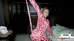 Petite amateur Thai teen Lily Koh with small boobs is wearing adorable hearts pajamas with a trap door opening at her booty She flashes her bubble butt and takes her dildos to feed all her neglected holes