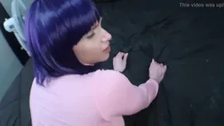 Anime cougar is getting on all fours on the floor and inhaling her paramour's humungous spunk-pump, finer than his wifey
