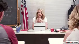 Were in detention because were caught while I was giving a blowjob.We really need our teacher to help us.But is she really spreading her legs ifo us.Damn sure, she want us to lick her milf pussy.She watches me get fucked and gives a pussy to mouth bj