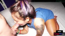 Asian BBW MILF amateur Mimi gives a customers big cock an amazing blowjob after she cleaned herself up in the shower first! This delicious curvy Thai cougar knew a thing or two about cock sucking and the guy recorded and enjoyed it!