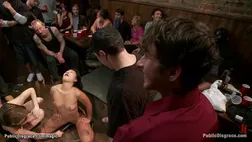 Dominatrix Princess Donna Dolore ties and blindfolds petite Asian slave Yuki Mori and makes her deep throat suck till gets facial in public