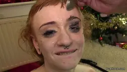 Horny dirty and tattooed redhead slut in black stocking Azura Alii gets hard and deep throat fucking and ass fucking with dominated cumshots and facials from hard big dick