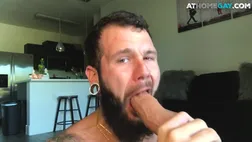Bearded tattoo stud dildoing ass and jerking for jizz