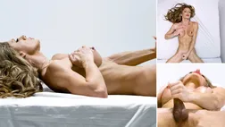 Big tits blonde tgirl Jade Venus is ready for her solo masturbating scene.Three cameras film the busty shemale while she handjobs her big trans cock.Watch her erected nipples while having a closeup look at her tranny dick and a full body shot