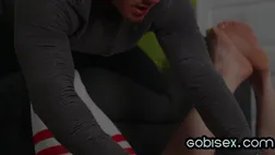 Bisexual doggystyled babe fucked in MMF while sucking cock