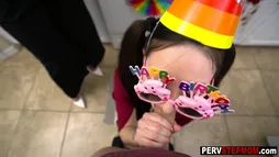 Special birthday blowjob party with wet MILF stepmom Melody Mynx and naughty teen stepsister Tifa Quinn Hot teen danced in front of stepbro After party MILF stepmom knelt and started sucking big cock with horny perfet ass teen