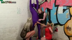 CFNM femdom babes jerk cock of spandex guy in group HJ