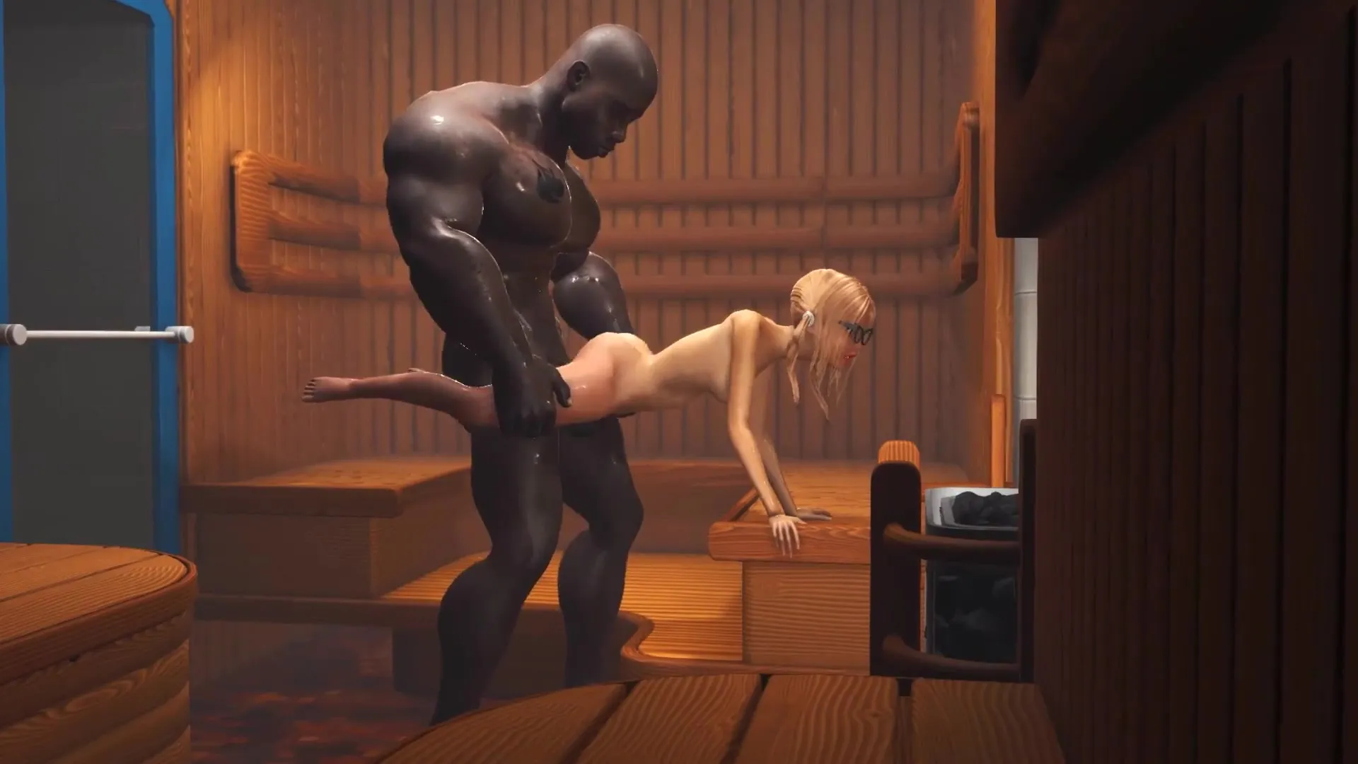 cherry nerdy chick in glasses gets ravaged by a ebony XXL jizz-shotgun in sauna