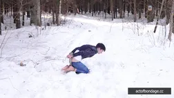 Claudia walked in the forest. Suddenly someone caught her and tied her up. She lost her sneakers and head to walk barefoot in the snow.