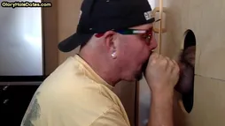 Cocksucking gloryhole DILF eats dick with his greedy mouth