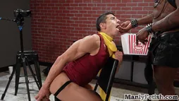 Cosplay asstoying stud black cock fucked n fed with popcorn