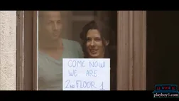Couple invites voyeur MILF for a horny threesome fuck after she had been watching them for some time and loves the fact she can finally join in