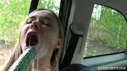 Guys, do you know what food porn is? Forget the food reviews from YouTube, I mean a real fuck in a pile of food. That's exactly what I had planned when I went on the street hunting with the camera. I really had luck, because I met a beautiful young lady who was just returning to quarantine with her weekly food shopping. I chatted with her and finally talked her into getting in my car. Confident Polina from Russia probably had no idea what to expect, but a good bundle of real dollars is much stronger than hunger. I rummaged in her grocery bags and gave her a real maul. I stuffed a cucumber in her mouth, sausage in her pussy and my dick in her ass. I topped it all up with a plate of eggs on her boobs and bottle of milk and a pound of flour on her head. As dessert, I cummed on her salad. Guys, that was incredible! Such a mess in the car that I should take it straight to the scrap yard. Check it out, but I'm warning you, this is only for the strong!