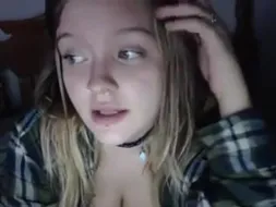 Flirty doll with yam-sized milk cans is posing on live web cam and toying with her milk bra-stuffers