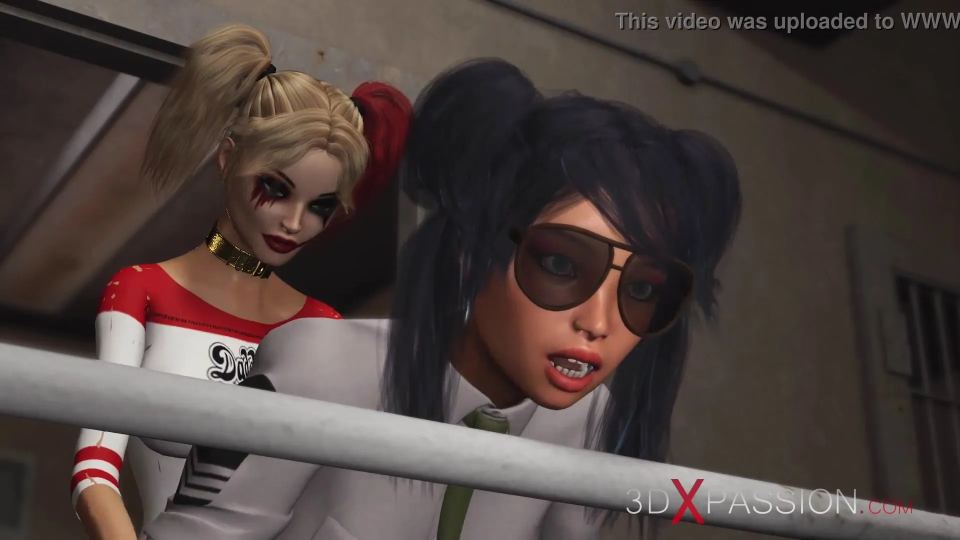 G/g hookup with strap dildo. Harley Quinn plays with a chick jail officer in the jail
