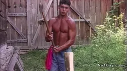 Jiri Lubov is chopping wood when he notices Martin Valko walk by and into the cabin then Martin sucks his big cock and takes him in the ass onto the door steps