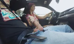 This Latina girlfriends knows how to have fun while driving. She releases her fine tits and starts to jerk off her bfs hard cock while driving!