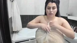 Ginormous cougar with ginormous boobies, Carol is having a douche in front of the camera