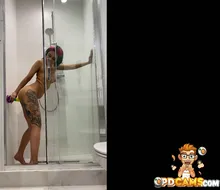 Super horny amateur cutie cam girl gets wild in her parents bahtroom and live broadcasting herself while fucking her dildo