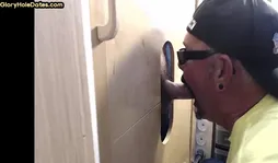 Gloryhole amateur DILF deepthroats rod in closeup oral