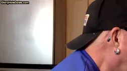 Gloryhole amateur DILF sucks cock at home in private closeup