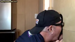 Gloryhole BJ DILF barebacked in butt in homemade anal sex