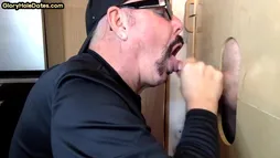 Gloryhole DILF sucks cock for warm cum in mouth ending