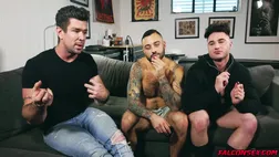 Michael open out his juicy ass so Drew can bury his tongue inside it. Wearing only a jockstrap, Michael returns the favor by swallowing down Drew's long hairy cock and 69ing with the big dick porn star.Michael blasts cum all over Drew's body hair, with Drew then nutting directly onto Michael's cakes