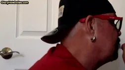 Homemade DILF sucks gloryhole pecker in amateur closeup
