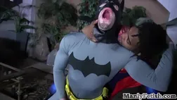 Hung black cosplaying superman barebacking batman doggystyle after getting blown in kinky uniform coupld