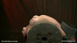 Shackled big boobs lesbian slave Felony in standing position whipped then immobilized in back arch position fucked with sybian by lezdoms Bella Rossi and Mz Berlin