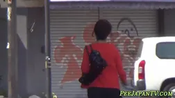 Japanese hottie urinating on street