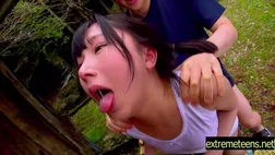 Kana Yura ambushed outdoors fucks in oil barrel, deepthroat squirting and creampie. Extreme domination action, petite Idol gets rough sex.