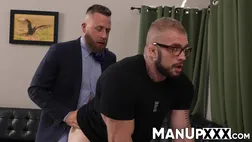 A big and bulky guy gets penetrated from behind and moans loudly for more!