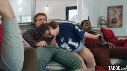Big tits teen Leana Lovings taking care of big cock friends during the match and babe double teamed by black guy and his big cock friend Big tits teen sat in the middle and grabbed their big sticks After handjob and blowjob teen enjoyed interracial sex