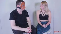 Lezdom blonde in trio with master and domina
