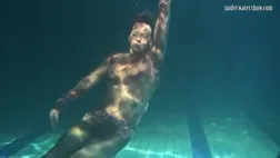 Czech teenager Bulova Lozhkova swims underwater in Czech pool