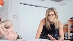 Mature light-haired doll with glasses gave a fellatio to her step- stepson, to help him inspect