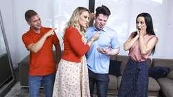 Milf's Crystal Rush and Charley Hart discipline their misbehaving stepsons Nicky Rebel and Alexander Vega by sitting on their faces with their fat asses! The absurd scene turns even crazier ass the boys start fucking each other's moms!