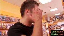 Pegging CFNM femdom babes fuck strapon sissy in 3way