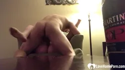 Ploughing her cunt on the sofa