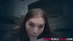 Pov sucking teen brunette jerks long hard shlong and gets cumshot