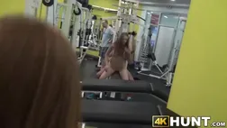 Promiscuous ginger girl got smashed in the gym, albeit there were other people doing their exercise